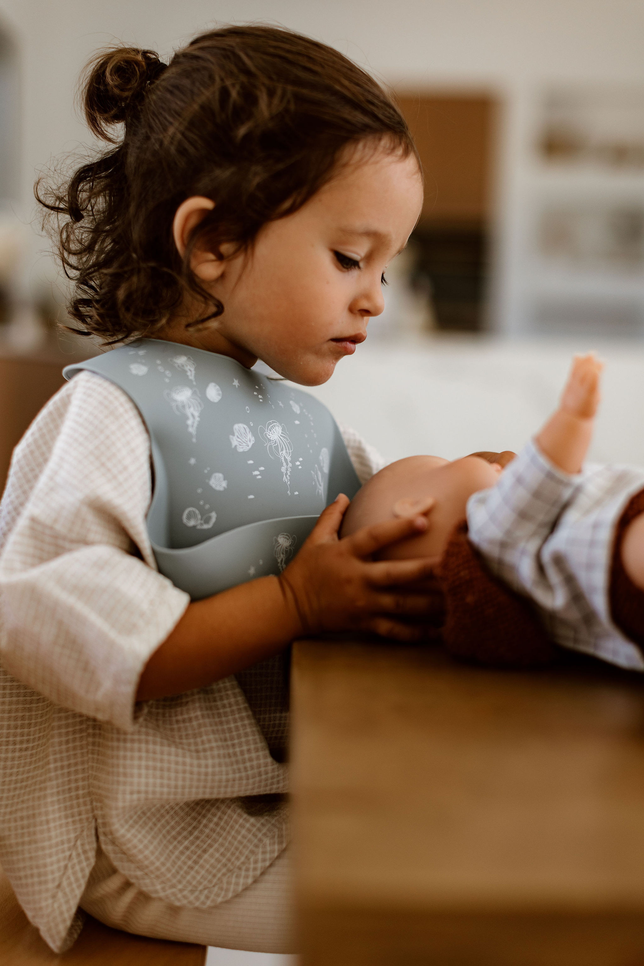 Pour garder les vêtements de votre bébé propres durant ses repas, notre joli bavoir “Océan” aux teintes douces est idéal !